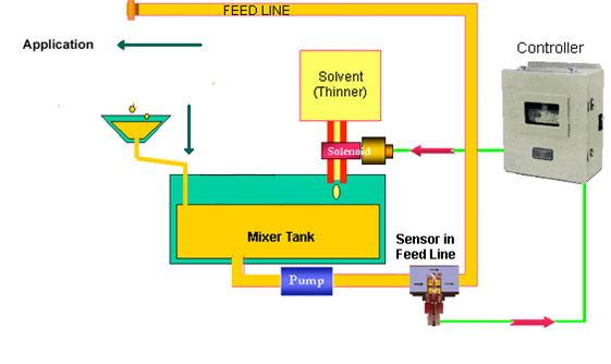 美國cambridge在線粘度計VISCOpro2000, VISCOpro1600等型號,具備強大的在線粘度檢測和粘度控制功能。下圖詳細解釋了應用cambridge粘度計,通過單閉環(huán)粘度自動控制方式設計,實現(xiàn)粘度的自動控制,保證了粘度參數(shù)的精度和穩(wěn)定性。