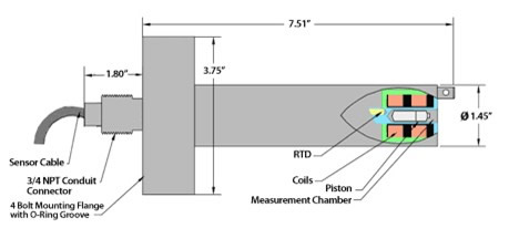 我們的技術(shù)基于簡單和穩(wěn)定的電子式概念。 兩組線圈在一個連續(xù)電磁力的作用下來回移動一個微型活塞。專利技術(shù)的電路分析活塞來回移動行程的時間,從而測量絕對粘度。 一個內(nèi)置的RTD溫度測量探頭,實時測量測量室的溫度。